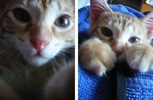 Aaah, der is ja knuffig! Auf den Fotos bzw. auf meinem Bildschirm sieht er irgendwie mehr blond als rot aus, aber so süß! Ollie ist auch mal ein ausgefallener Katzenname. :D