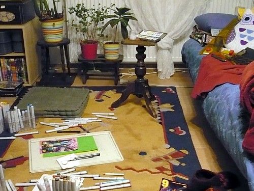 Schlachtfeld sag Ich dazu nur. Man bemerke das hier nicht nur der Boden und die Couch, sondern auch der Schreibtisch so aussahen (mittlerweile ist es -wieder- nur der Schreibtisch). Eine der vielen Facetten meiner Ordnung wenn Ich am arbeiten bin.. XD"